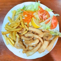 Frito variadoAdobo, chocos, puntillitas y boquerones. Acompañado de patatas fritas |
